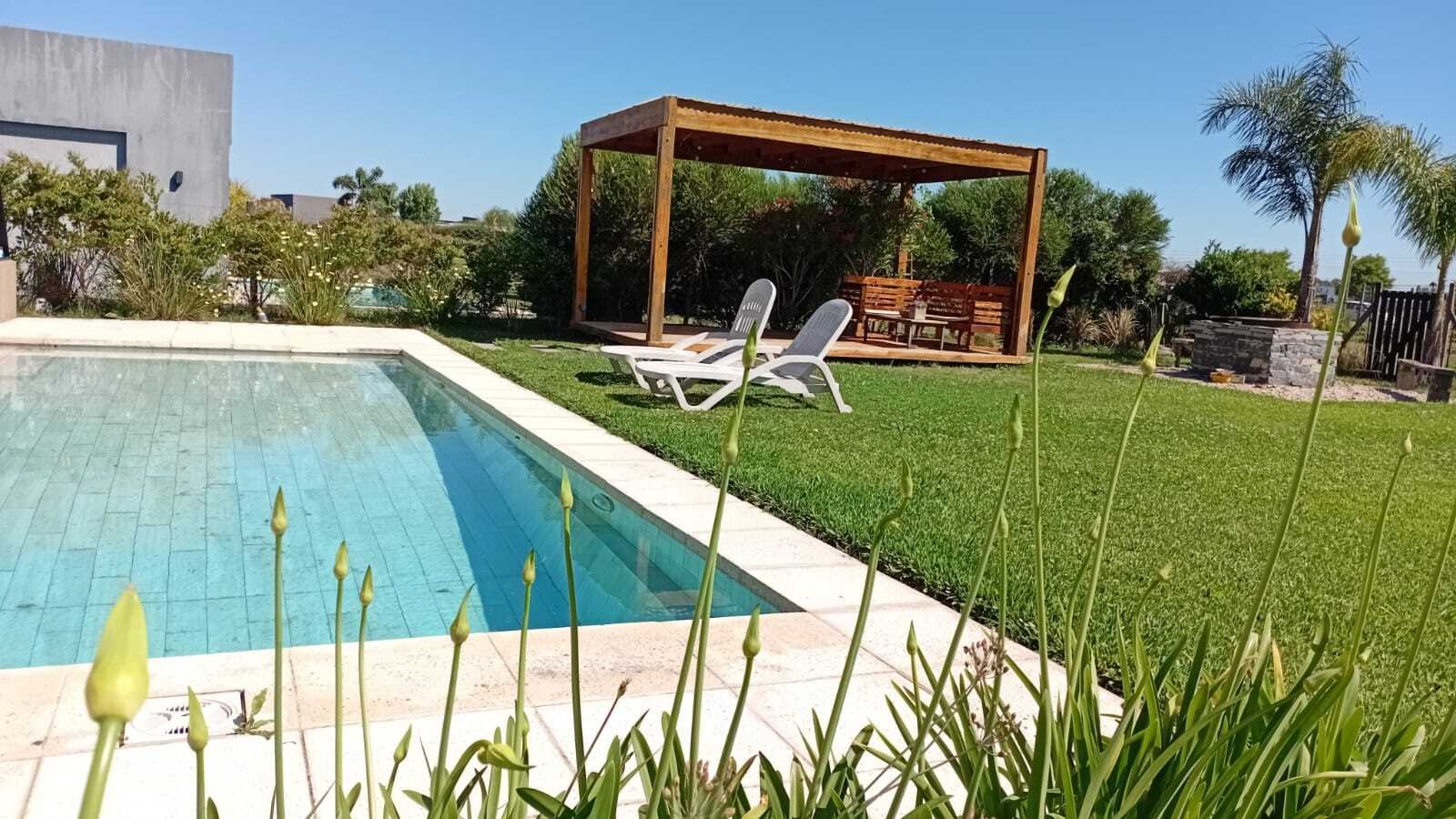 CASA EN ALQUILER TEMPORAL – Barrio cerrado con amenities. Hermosa casa en alquiler temporal ubicada en exclusivo barrio cerrado, ideal para familias o grupos que buscan confort, seguridad y múltiples opciones recreativas. Se alquila totalmente amueblada y equipada. La propiedad cuenta con 3 habitaciones: * Suite principal con cama 2 x 2 y baño privado. * Segunda habitación con sommier individual y cama adicional con carro. * Tercera habitación con sommier y cama adicional guardable debajo. Dispone de 2 baños completos y 1 toilette. Amplio living comedor con aire acondicionado, al igual que todas las habitaciones. En el exterior se destaca la galería con pérgola, parrilla y fogonero con parrilla, ideales para disfrutar reuniones al aire libre. Garage para 2 autos. Cuenta con Aire acondicionado en todos los ambientes Se aceptan mascotas Tarifas: * Enero completo: USD 4.000 * Febrero completo: USD 3.500 * Quincena enero: USD 2.500 * Quincena febrero: USD 2.000 Alquiler incluye expensas y servicios, piletero y jardinero El barrio ofrece destacados amenities: Hípico, Golf House con restaurante, Food trucks, Canchas de paddle y tenis, Cancha de fútbol, Gimnasio, Bajada náutica Ideal para vacaciones, descanso o estadías temporales en un entorno seguro, natural y con servicios premium. Corredora responsable Paz Bellorini Mat. 7192 CMPCSI